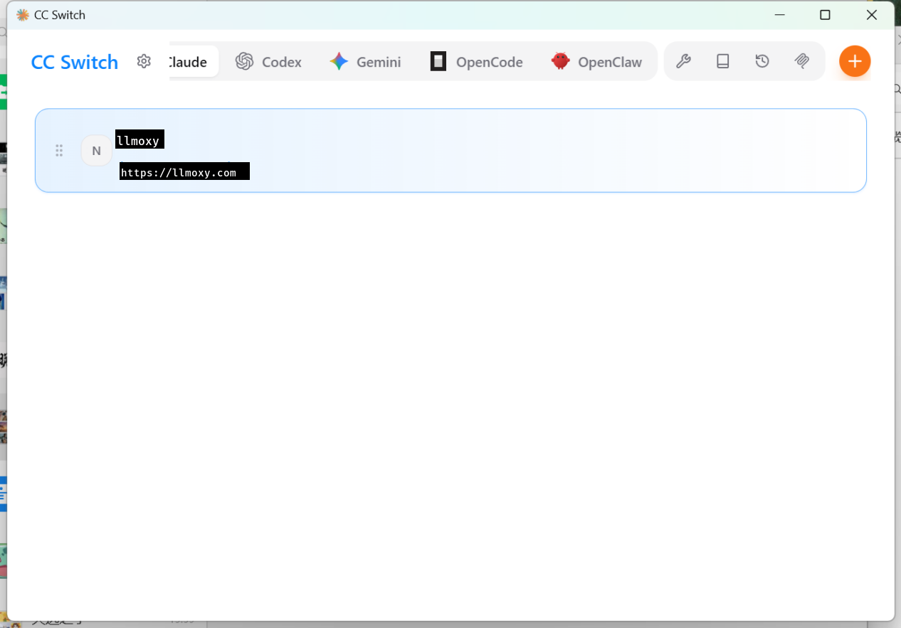 启动 cc switch,根据所使用插件进行配置,选择 Claude。
