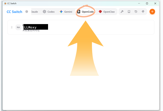 打开 cc switch 并选择 OpenCode