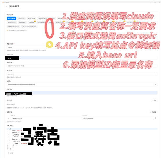 https://llmoxy.com - API 格式:anthropic messages(原生)