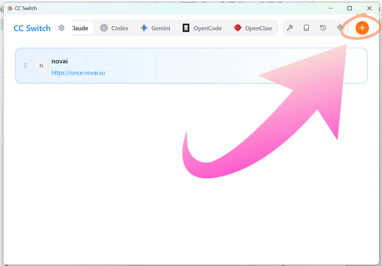 在界面右上角找到并点击加号按钮,添加新的供应商配置。