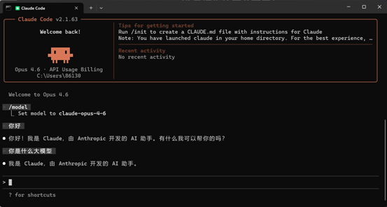 回车确定选中后即可开始正常使用 Claude Code。
